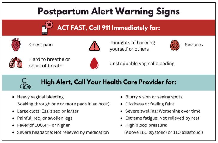 All postpartum patients at our hospitals will receive a teal wrist band with a postcard and magnet highlighting new postpartum warning signs. The information – available in English, Spanish, Karen and Arabic – is aimed at helping moms and their loved ones identify when help/emergent care may be needed.