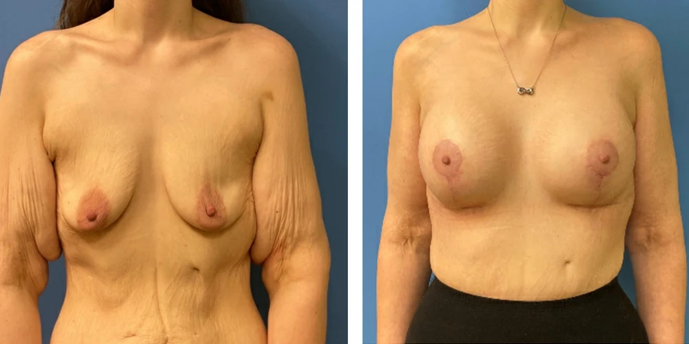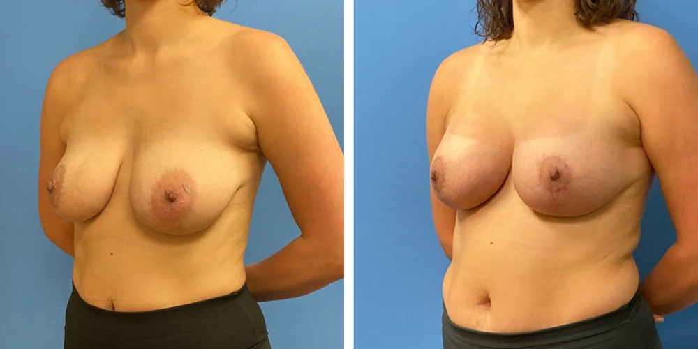 Someone women opt to combine a breast lift with augmentation, which includes the implantation of saline or silicone gel devices – or the transfer of fat from one part of the body to the breast area – following the breast lift. This two-part procedure can be done together or separately depending on your individual goals and concerns.